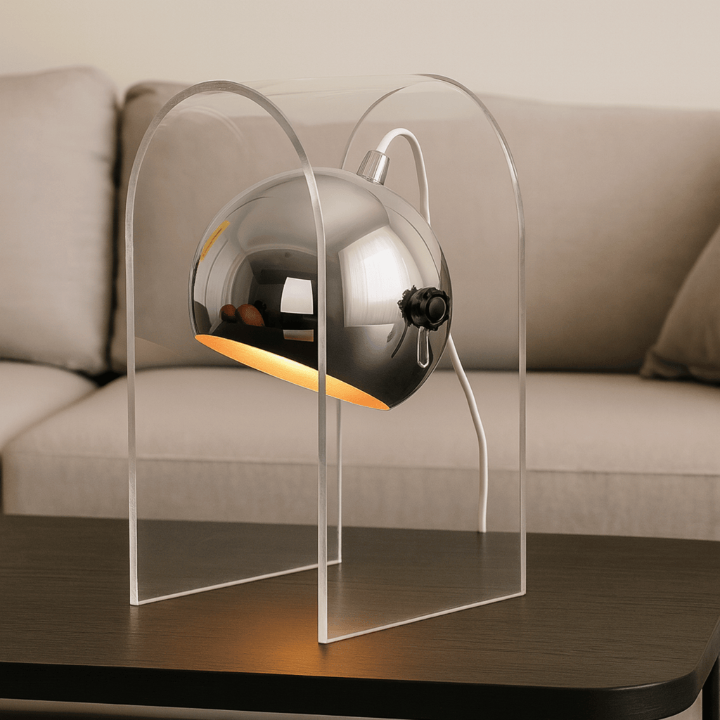 - Material: Acrylic and frosted glass with silver-finish base
