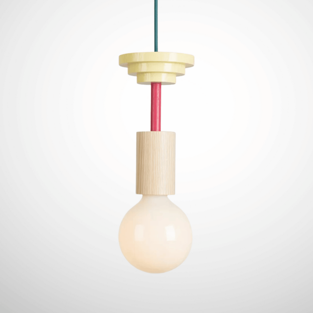 The Formvy pendant lamp stands out because it blends Bauhaus geometric design with genuine natural wood accents and an iron structure — a combination that feels both sculptural and warm. Unlike flat or purely industrial fixtures, its oversized milky glass bulb casts a soft, diffused glow that brings an unmistakable Nordic coziness to kitchens, dining rooms, and bedrooms alike.