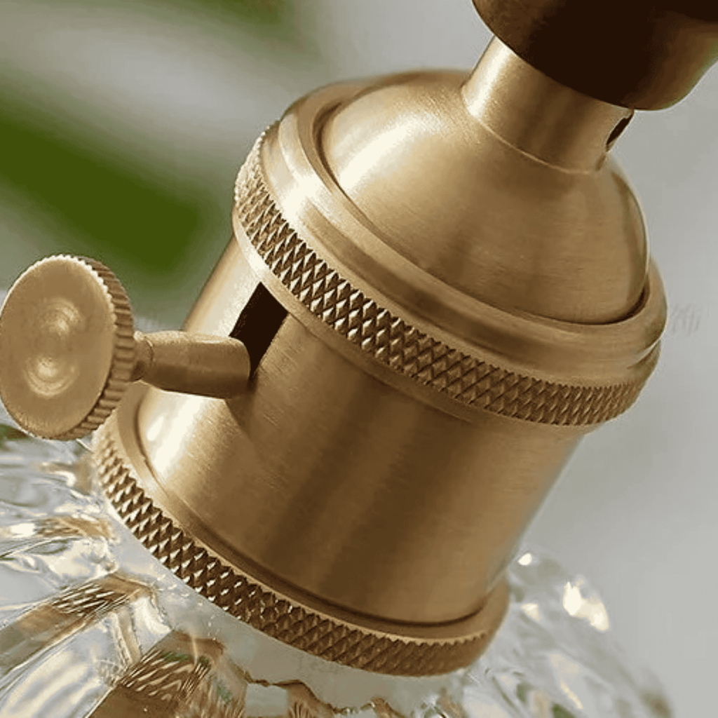 Caring for your Gloda is simple. Wipe the walnut wood and brass parts gently with a soft, dry cloth to remove dust. Avoid any moisture or liquid cleaners near the brass fittings or electrical cord. For the frosted glass shade, a lightly dampened cloth works well — just ensure it is fully dry before switching the light back on. Regular, gentle dusting keeps it looking its best for years.