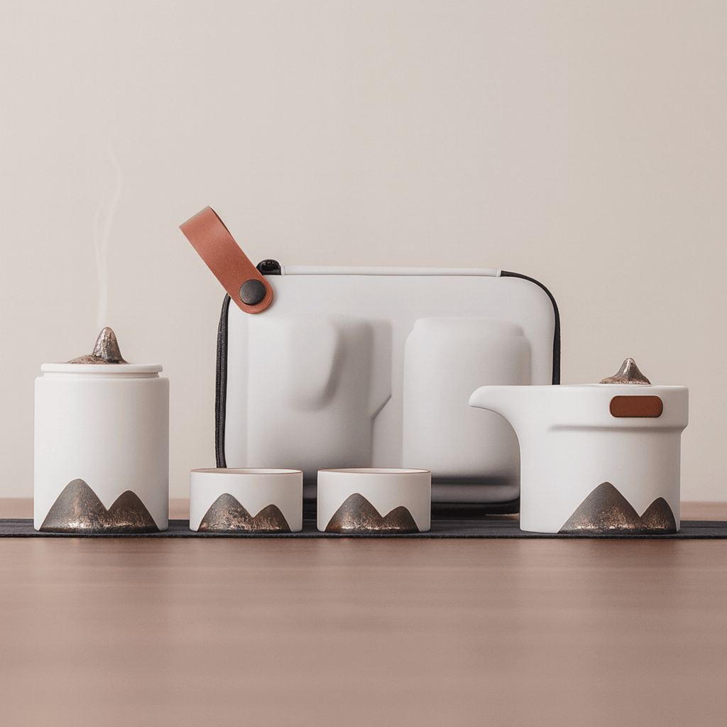 The Fjella ceramic tea set is individually hand-painted by artisans, meaning no two sets share the exact same brushwork. The mountain motif design draws from Japanese ceramic tradition, giving each set a one-of-a-kind character. Combined with the included travel bag and complete teaware kit, it offers both artistic beauty and everyday practicality that mass-produced sets simply cannot match.