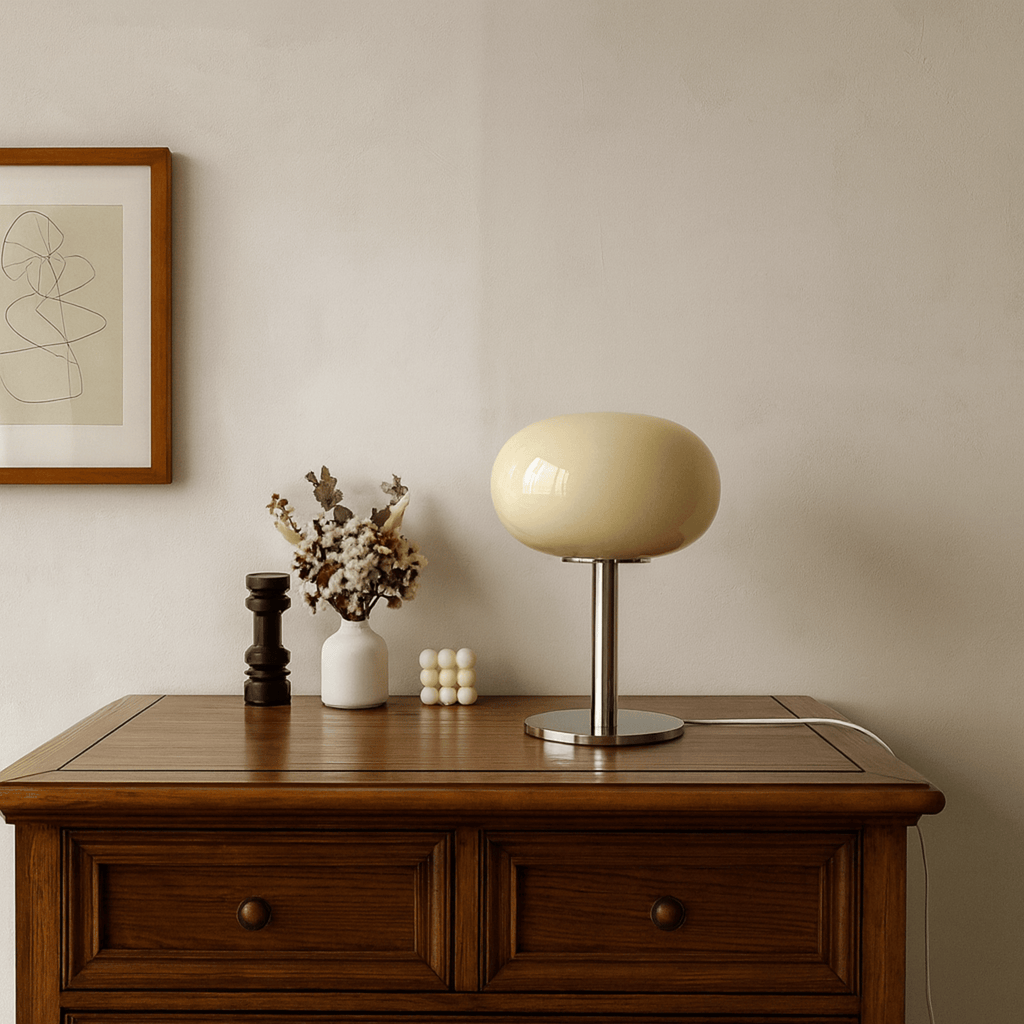 Absolutely — the Lysta is designed with a compact, bedroom-friendly footprint. It stands 11 inches tall (approx. 28 cm) and measures 7.8 inches in diameter (approx. 20 cm), making it a graceful fit on most nightstands, side tables, and shelves without crowding your surface. Its proportions are intentionally balanced to feel substantial without overwhelming a smaller space.