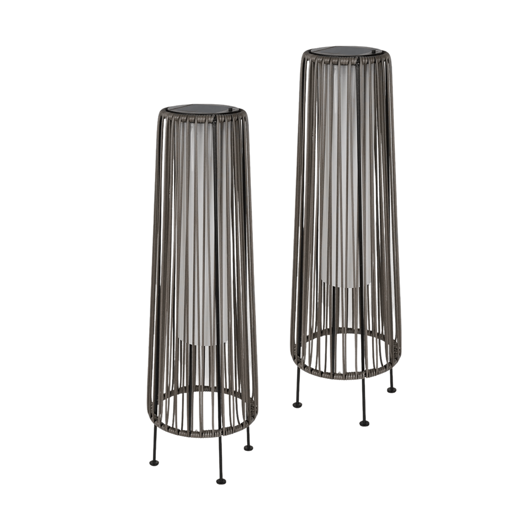 Each lamp measures 8.6 inches in diameter (approx. 21.8 cm) and stands 26.7 inches tall (approx. 67.8 cm). This generous height makes them ideal for lining garden paths, flanking entryways, or anchoring patio corners. The set includes two lamps, giving you a balanced, symmetrical look without needing to purchase extras. Their substantial size ensures they read beautifully in both daytime and evening settings.