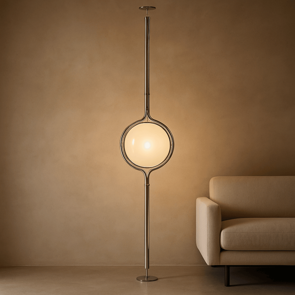 The Stavlys casts a soft, diffused ambient glow through its white acrylic globe, creating a warm, intimate atmosphere perfect for living rooms, lounges, and studio spaces. Unlike harsh overhead lighting, this floor to ceiling lamp fills vertical space with gentle light that feels cozy, sculptural, and intentional — ideal for evening relaxation or as a permanent design statement in any modern interior.