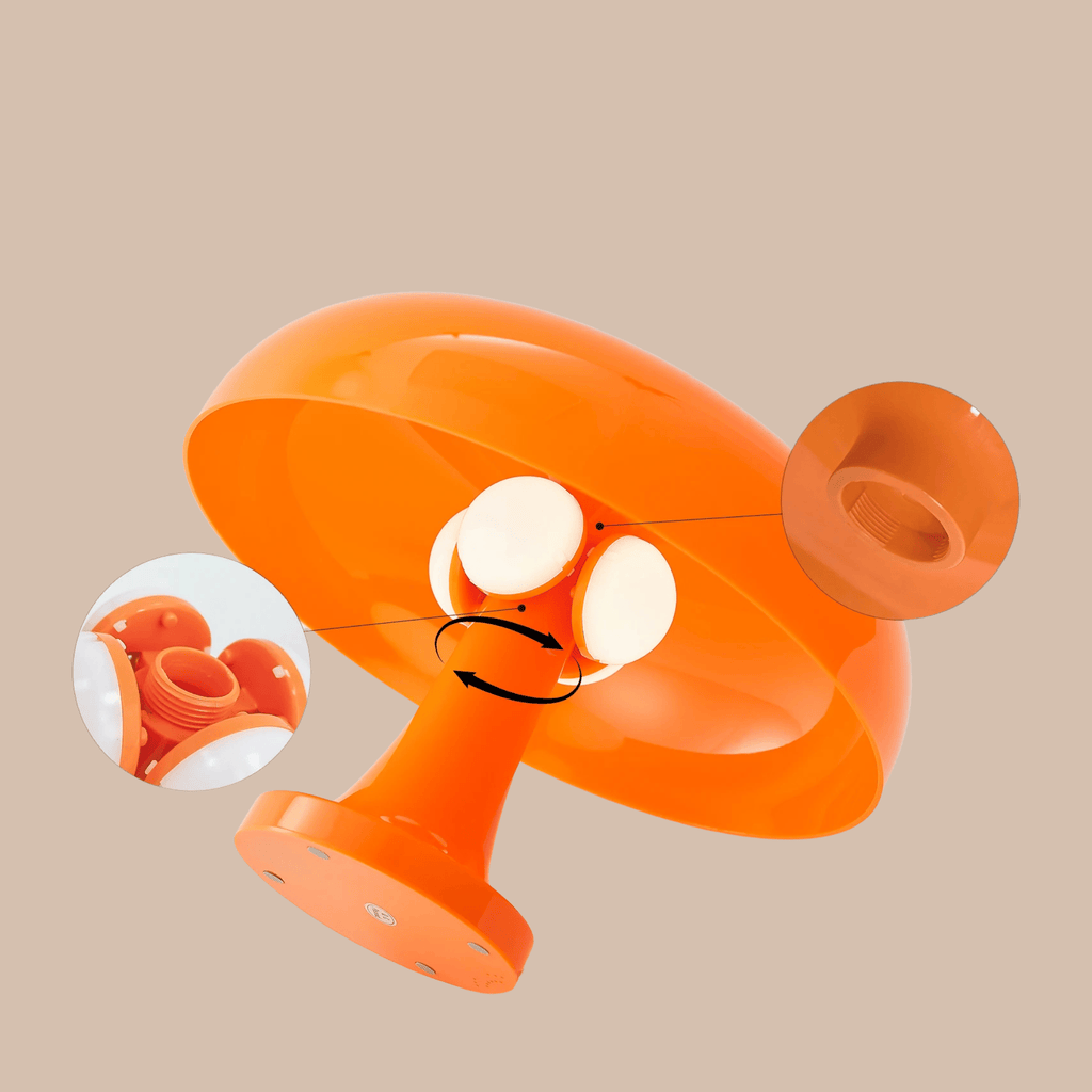 The Svampa is crafted from ABS and PS (polystyrene) — two durable, lightweight plastics widely used in quality home goods for their resistance to impact and their ability to hold a clean, consistent finish. These materials ensure the lamp maintains its sculptural mushroom dome shape and vibrant color over years of daily use, making it both a lasting design piece and a reliable light source.